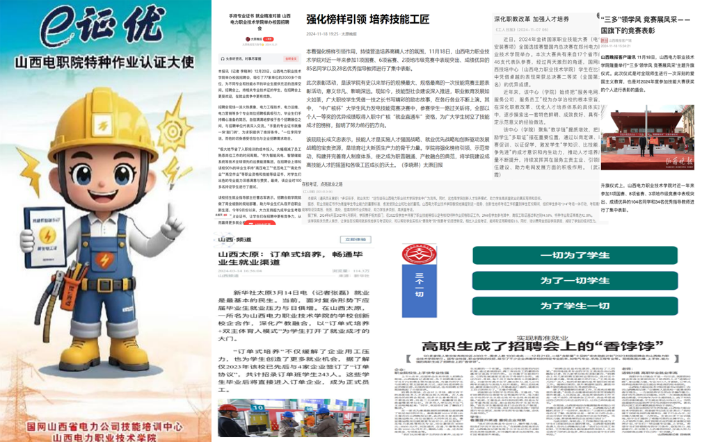 對學(xué)院而言,2024年學(xué)院高考錄取分?jǐn)?shù)平均提高了50分,更多企業(yè)愿意與學(xué)院深化產(chǎn)教融合,建立長期合作關(guān)系,2025年訂單企業(yè)招錄學(xué)生增至258名。2024屆畢業(yè)生就業(yè)率高達(dá)97.16%,位居全省第二。學(xué)院理論成果、機(jī)制固化轉(zhuǎn)化雙軌并行,將項(xiàng)目經(jīng)驗(yàn)成果申報獲批山西省高校思想政治教育研究會課題,獲批省公司2025年“管理創(chuàng)新項(xiàng)目”計劃《基于“1+N”模式的特種作業(yè)技能認(rèn)證體系構(gòu)建》。對項(xiàng)目實(shí)施中的各項(xiàng)辦法和寶貴經(jīng)驗(yàn)進(jìn)行全面總結(jié),形成《就業(yè)工作管理辦法》以及《項(xiàng)目經(jīng)驗(yàn)成果工作流程》,有力推動項(xiàng)目的固化落地與持續(xù)發(fā)展。同時在電力行業(yè)院校中積極推廣,初步與武漢電力職院、哈爾濱電力職院、鄭州電力專科學(xué)校達(dá)成項(xiàng)目合作意向,為電力行業(yè)人才培養(yǎng)和社會責(zé)任履行提供更多支持。