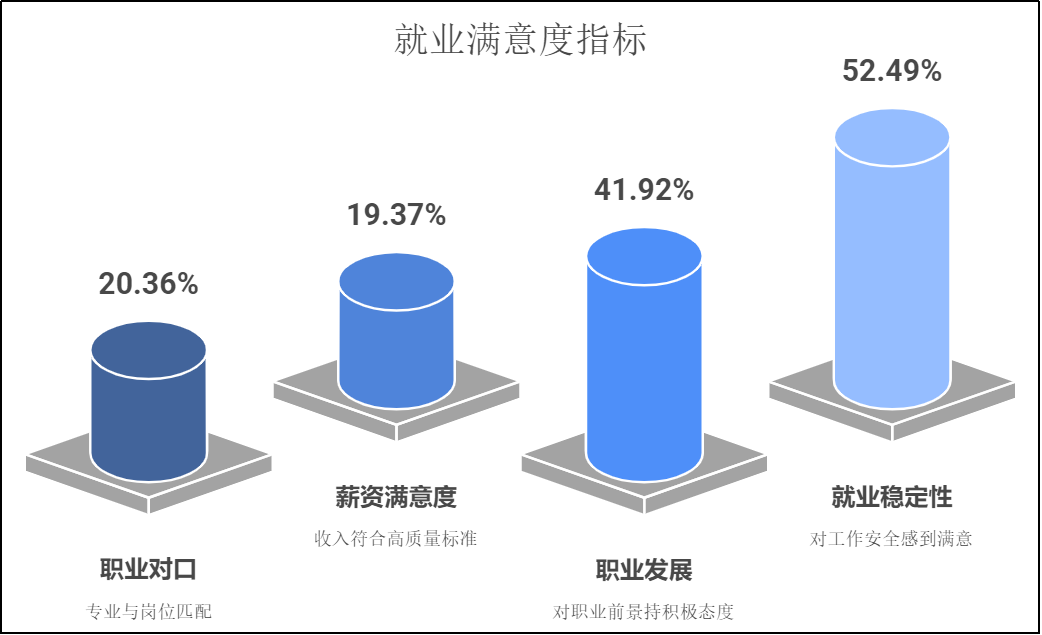 圖1:高質(zhì)量就業(yè)滿意度(數(shù)據(jù)來源:對近兩年就業(yè)的1002名學(xué)生調(diào)研)