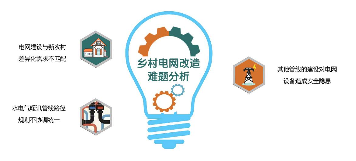 二是水電氣暖訊管線路徑規(guī)劃不協(xié)調(diào)統(tǒng)一。各部門“各自為政”規(guī)劃的管線容易引發(fā)爭議、影響村容村貌。且水電氣暖訊管線的建設(shè)與維護(hù)缺乏統(tǒng)籌,極易對(duì)在運(yùn)電網(wǎng)設(shè)備帶來間距過近、外破等不利影響。