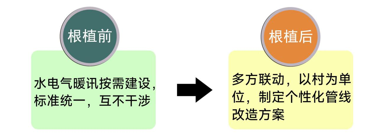 通過根植項(xiàng)目開展,政府“千萬工程”重點(diǎn)項(xiàng)目高質(zhì)量落地,在預(yù)期時(shí)間內(nèi)完成全部工作任務(wù)。公司農(nóng)村電網(wǎng)改造效率大幅提高,在7個(gè)村實(shí)現(xiàn)高壓線路不進(jìn)村,低壓線路全入地,最大限度降低管線外露帶來的安全隱患,為村民安全用電提供堅(jiān)強(qiáng)的保障。對(duì)水電氣暖訊企業(yè)來說,通信線路、進(jìn)戶線實(shí)現(xiàn)全入槽,維修率大幅下降,為其節(jié)約了建設(shè)運(yùn)維成本,管線覆蓋率達(dá)到100%,獲得更多潛在客戶。對(duì)村委來說,農(nóng)村面貌煥然一新,農(nóng)村政務(wù)服務(wù)水平全方位提高,鄉(xiāng)村人居環(huán)境更加宜居,村民生活品質(zhì)得到大大提升,人民有了更多幸福感。